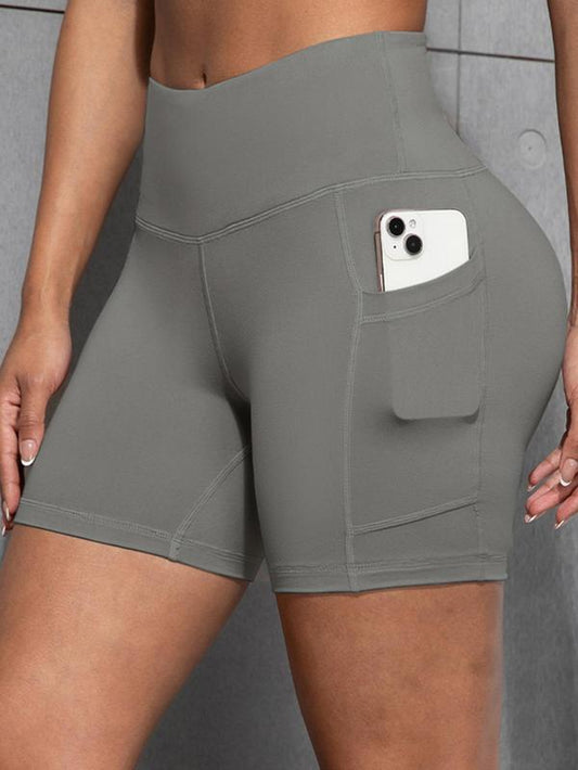 Women'S Solid Color Pocket Design Skinny Shorts, Casual Comfy Breathable High Stretch Yoga Shorts, Ladies Bottoms for All Seasons